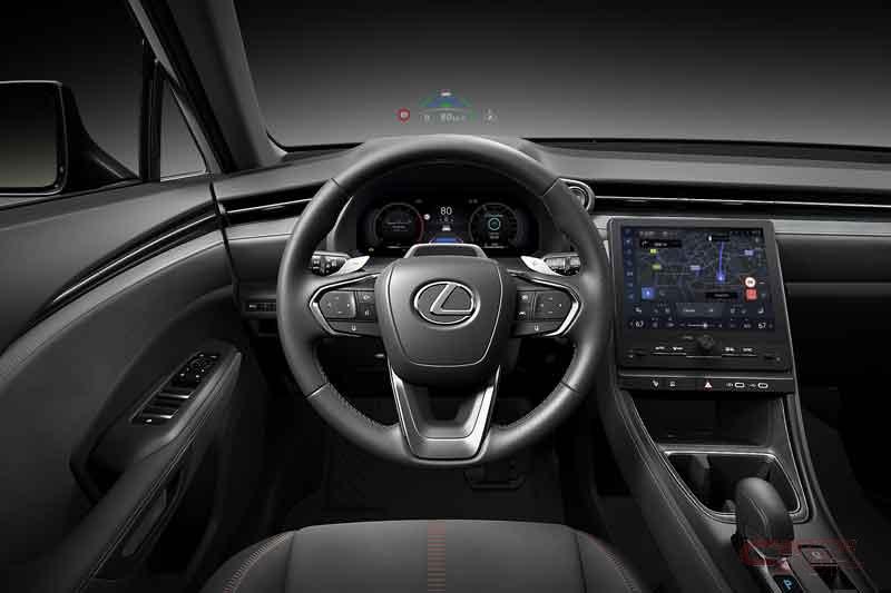 外装では、レクサスの新フロントフェイス“ユニファイドスピンドル”や、低重心でシンプルな塊感を強調するリヤデザインを採用し、足元には大径のタイヤを装着する等、スタンスの良いダイナミックなプロポーションを実現。