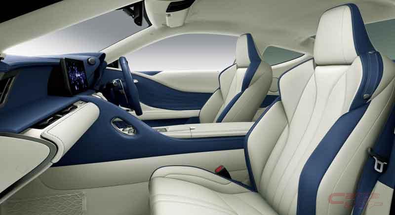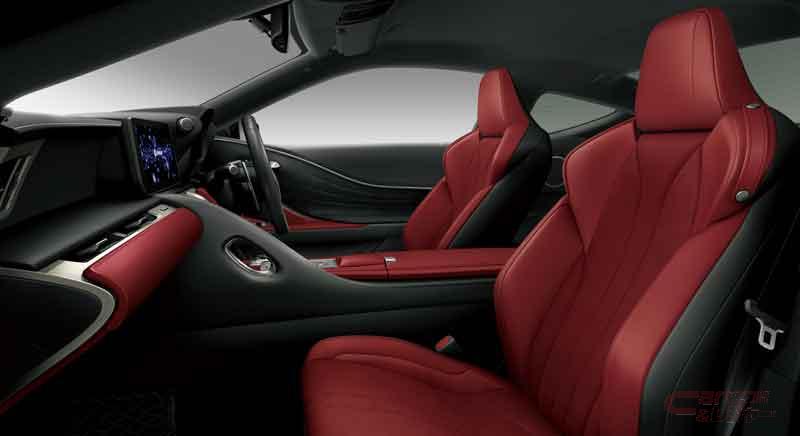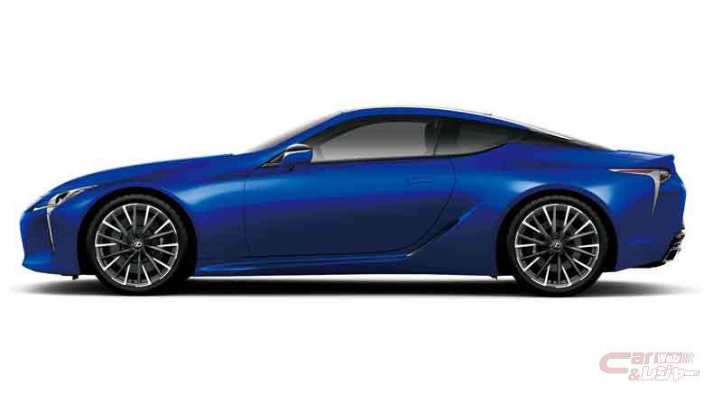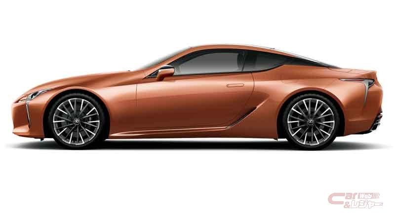 車体色にソニックカッパーとヒートブルーコントラストレイヤリング、内装色にダークローズを新たに採用。LC500h、LC500にはブルー&ホワイトを新規に採用した他、内装のカラー配色を一部変更した。LC500 コンバーチブルでは、ルーフカラーに新規色のレッドを採用した。