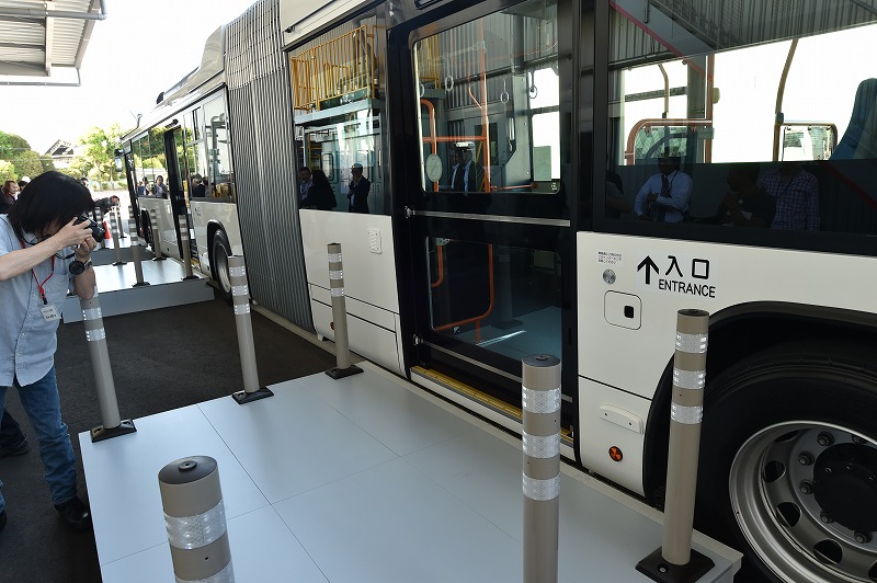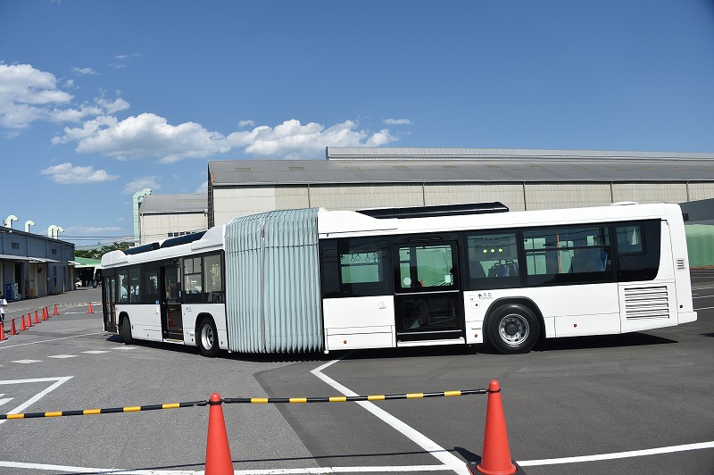 いすゞ自動車と日野自動車は5月24日、共同開発した国産初のハイブリッド連節バス(以下、連節バス)を、両社の観光・路線バスの製造を行うジェイ・バスの宇都宮工場で公開した。