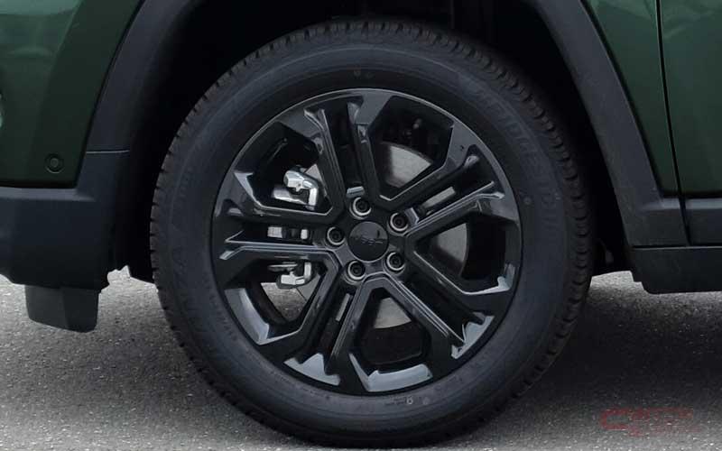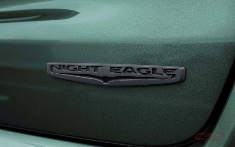 外装では、グロスブラックアクセント付ブラックフロントグリル、グロスブラックフォグランプベゼル、ブラックウインドウモールディング等の専用パーツが特別感を演出している他、ブラック仕上げのNight Eagleバッジ/Jeepバッジ/Compassバッジや、ベース車に対してサイズアップした18インチグロスブラックアルミホイールを装備し、精悍な雰囲気を強調した。