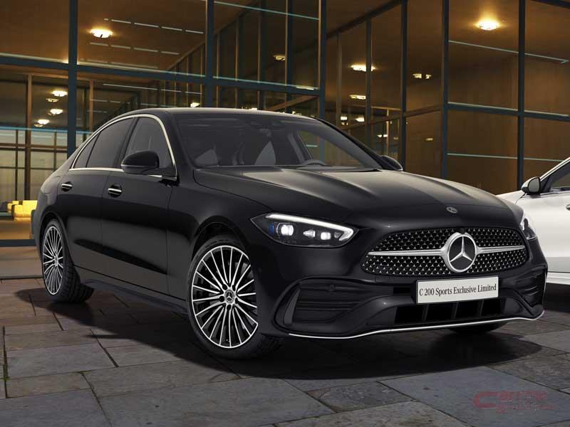 特別仕様車C 200 スポーツエクスクルーシブリミテッド(ISG搭載モデル)は、「C 200 アバンギャルド」をベースに、外装では、AMGラインエクステリアとブラックアクセントを施した19インチAMGマルチスポークアルミホイールを装備。内装には、ナッパレザーシート、ブラウンハイグロスアッシュウッドインテリアトリム、運転席・助手席シートベンチレーター(シートヒーター機能含む)を特別装備している他、パノラミックスライディングルーフや、Burmester3Dサラウンドサウンドシステムを標準装備。通常モデルには設定がない装備を多数採用することで、最上級のCクラスに仕上げている。