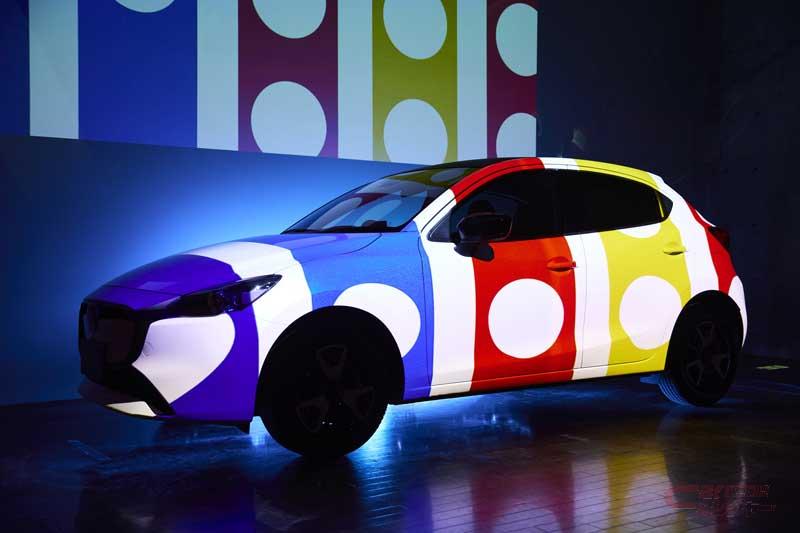 マツダは7月13日、長野県北佐久郡御代田町で7月15日(土)〜9月3日まで開催される「浅間国際フォトフェスティバル2023」に協賛し、プロジェクションマッピングを使ってアートを投影した「MAZDA2」を展示すると発表した。