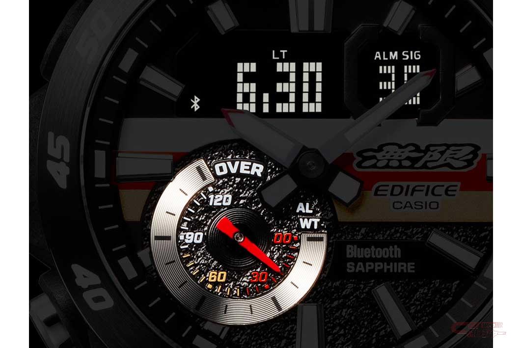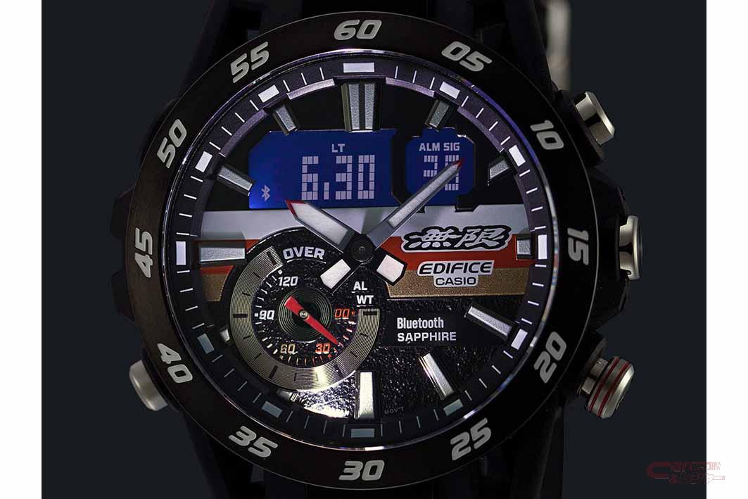 無限とカシオ計算機とはこれまで、「1985年鈴鹿8耐 WHITE Bull」「1989年全日本モトクロス選手権」「2016年 マン島TT TT ZERO参戦車両 神電」等のレースサポート、また、G-SHOCK DW8400 コラボレーションモデルの制作等を行ってきた。そしてこの度、エディフィスモデルでは初めてのコラボレーションが実現した。