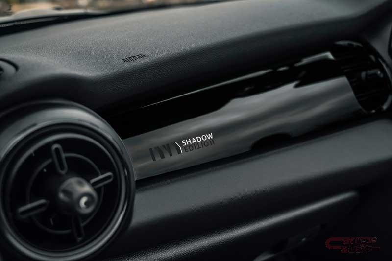ブラックトーンに統一した内装では、レザレットシート・カーボンブラック、アンスラサイトの内装内張りを標準装備し、ドアシルには外装との統一感を持たせるためShadow Edition専用デザインを採用。インテリアパネルにShadow Editionのレタリングを施す等、全体的にダークな室内空間とした。