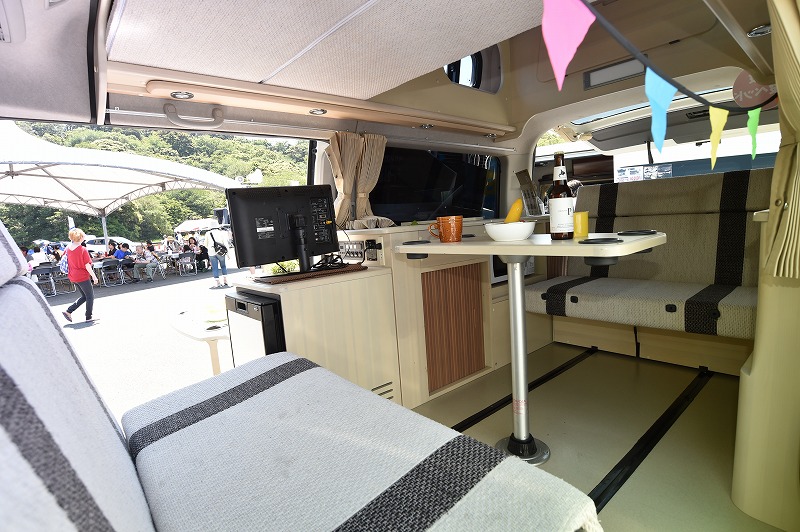展示スペースには各社が話題のモデルや定番の人気車種に加え、豪華絢爛な輸入モデルまでさまざまなタイプが揃った。さらに、展示会当日は気温が30度近くまで上昇し、キャンピングカー内でエアコンが使えるモデルも多くの注目を集めた。