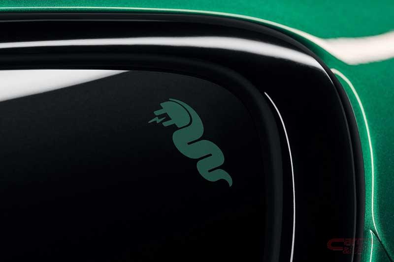 外装では、アルファ ロメオブランドの象徴である蛇(ビショーネ)が電動化したデザインを採用。チャージポート側のリアドアガラスには、ブランドアイコンの大蛇“エレクトロ・ビショーネ”が施され、ブランドの核となるスポーティネスを継承しつつ、電動化への“La Metamorfosi(ラ・メタモルフォシ/変革)”を体現したという。さらに、“ヴェローチェ”グレードのリヤ側には、クロームのデュアルエキゾーストパイプを装備し、スポーティな外観を演出している。