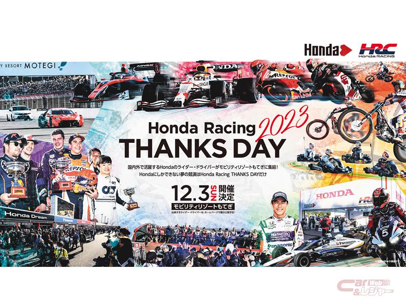 ホンダは8月2日、「Honda Racing THANKS DAY(以下「ホンダ・レーシング サンクスデー」)2023」を、12月3日に栃木県のモビリティリゾートもてぎで開催すると発表した。
