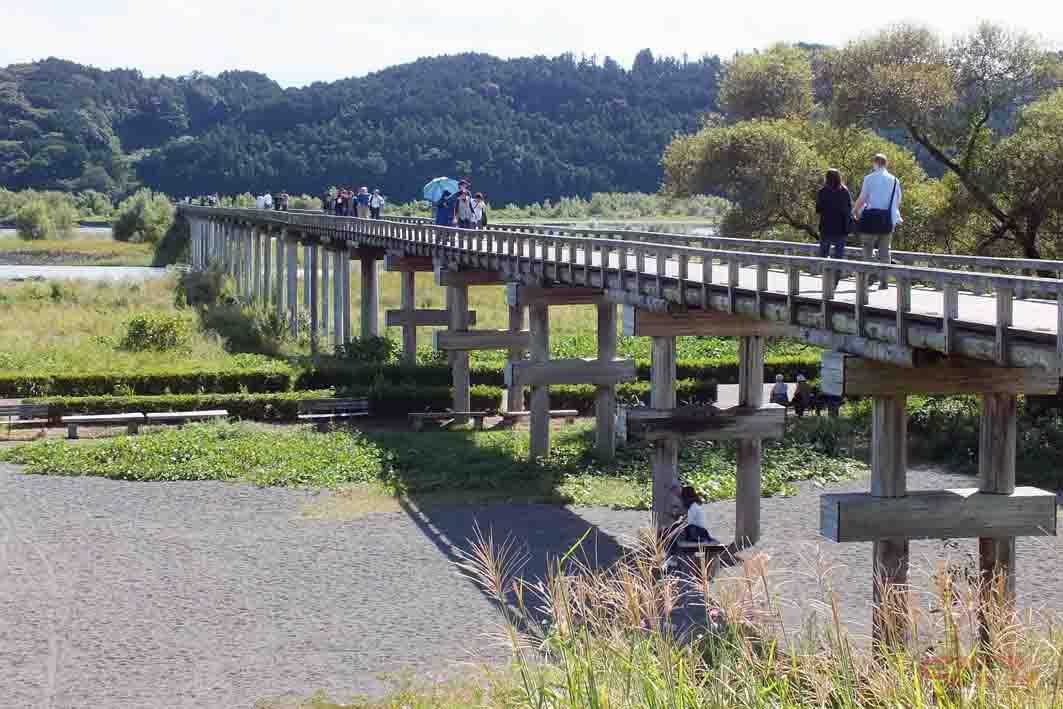 今季から新たに加わった「蓬莱橋」は、大井川にかかる全長897.4mの世界一の長さを誇る木造歩道橋で、ギネスブックにも登録されている。全長の数字(897.4)から「やくなし=厄無し」の語呂あわせで縁起のいい橋。また「長い木の橋=長生きしてね」とご長寿、健康を祈る橋ともいわれている。