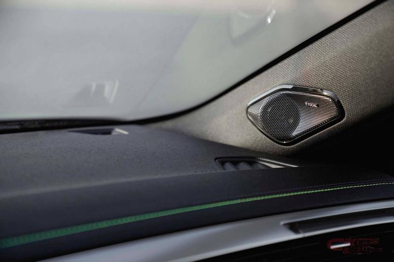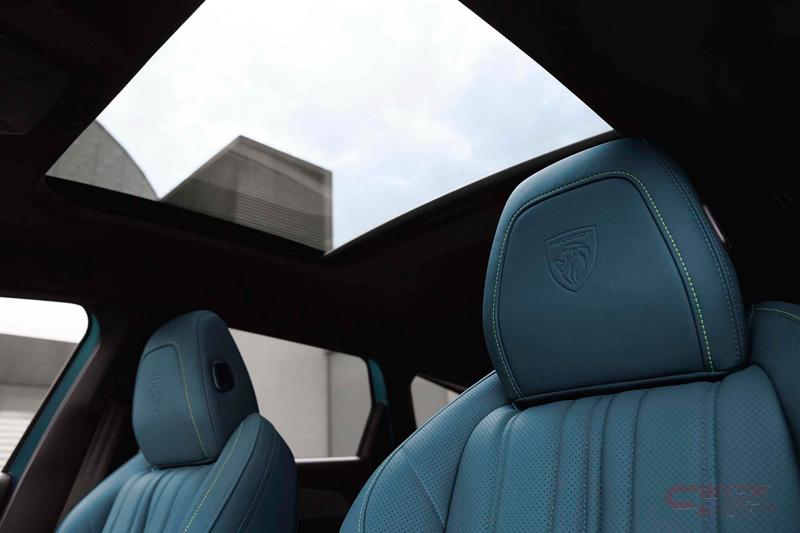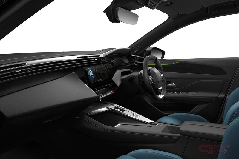 日本初導入のブルーナッパレザーシート(運転席パワーシート/フロントマルチランバーサポート/フロントシートヒーター付)を採用し、上質感のある室内空間とした他、308ハッチバックでは初採用となるパノラミックサンルーフが明るく、開放感のある室内を演出。さらに、690W 12チャンネルの高性能アンプと10個のスピーカーを備えるフランスのハイエンドオーディオブランドFOCAL社のプレミアムHiFiオーディオシステムを特別装備している。