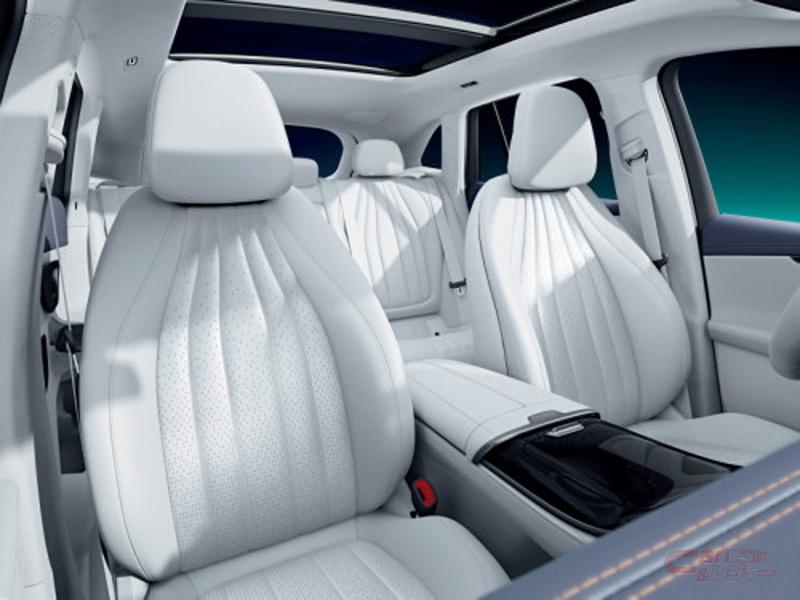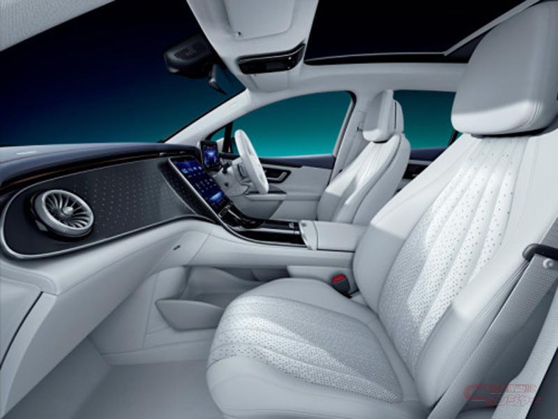 EQE 350 SUVでは、輪郭に沿って照明付きパイピングが施された、スリムな一体型の形状が特徴のスポーツシートを標準装備している他、レーザーカットバックリットインテリアトリム (メルセデス・ベンツパターン)を採用。