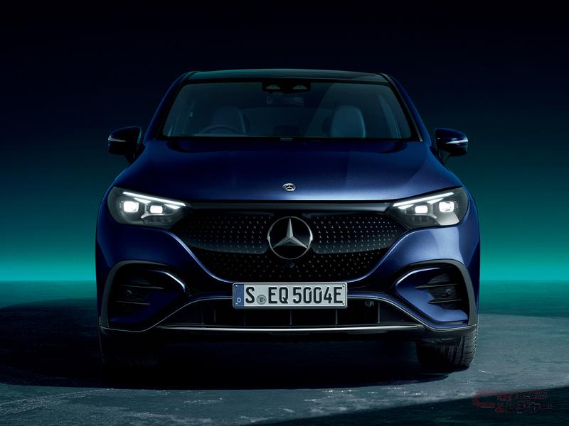 フシームレスデザインが際立つフロントは、右のヘッドライトと、存在感のある立体的なスリーポインテッドスターをあしらったブラックパネルグリルを装備している他、パネルの継ぎ目が描く線が 少ないオーバーラップ型のボンネットを採用。