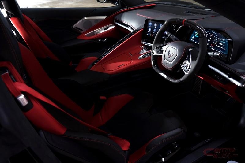 シボレーコルベットZ06は、サーキット走行を前提としたパフォーマンスモデルとして設計・開発され、市販の自然吸気エンジンとしては最高クラスの最高出力646PSを発揮する新型V型8気筒5.5リッターDOHCエンジン「LT6」を搭載。共通シャシー、類似したエンジン構造とデザインを有するレーシングカー「C8.R」から得た知識を細部に生かすことで、高速走行時の安定性とコーナリング性能を向上させるとともに、優れた冷却性能、ブレーキ性能を兼ね備え、高いサーキット性能と快適な乗り心地を実現した。