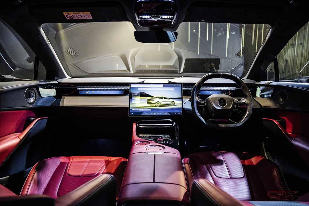 インテリアはこれまでのロータスモデルとは一線を画する。キャビンはラグジュアリーで広々としており、機能性を重視したデザインと最先端のインフォテイメントやコネクティビティを備える。厳選された素材や仕上げによりクラフトマンシップが感じられるとともに、サステナビリティにも配慮した。