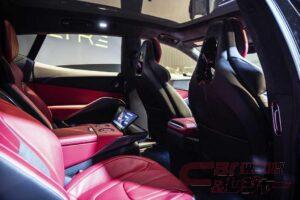 室内は標準で5人乗り、オプションで4人乗りレイアウトも用意されている。タッチスクリーンや12.6インチのインストルメントパネルディスプレイ、半拡張実現を備えた29インチのヘッドアップディスプレイ等を持つ先進のデジタルコクピットを備える他、音声対話による各種の操作も可能だ。