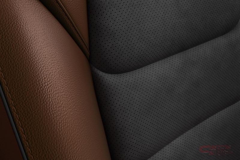 内装では、レトロな雰囲気のテラコッタカラーとスポーティーさを際立たせるブラックを組み合わせたコーディネーションを採用。合成皮革(テラコッタ)/レガーヌ(ブラック)の2トーンカラーのシートを装備し、ニーレストパッド/ドアアームレスト/フロントセンターアームレストにテラコッタカラーのステッチを採用している。