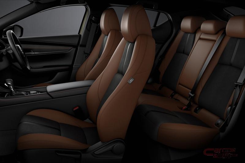 内装では、レトロな雰囲気のテラコッタカラーとスポーティーさを際立たせるブラックを組み合わせたコーディネーションを採用。合成皮革(テラコッタ)/レガーヌ(ブラック)の2トーンカラーのシートを採用した他、インパネデコレーションパネル レガーヌ(ブラック)を装備することで質感を向上。さらに、ニーレストパッド/ドアアームレスト/フロントセンターアームレストにテラコッタカラーのステッチを採用。