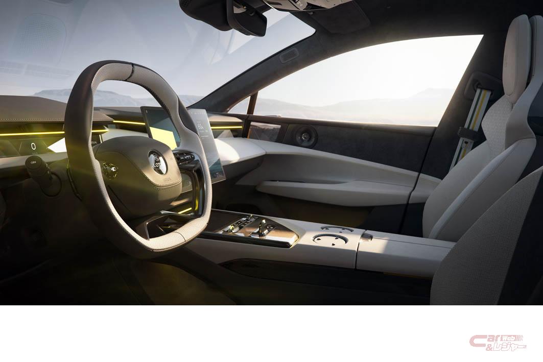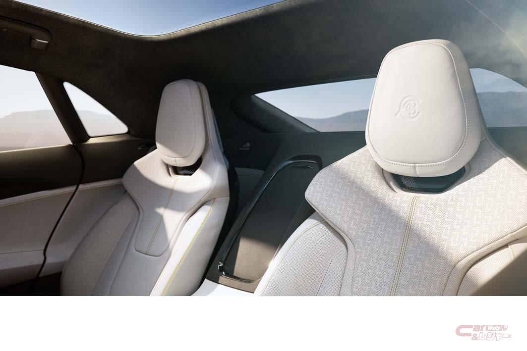 最高仕様モデルは、同社のハイパワーデュアルモーター(最高出力905hp/最大トルク985Nm)を搭載したフルタイム全輪駆動で、最高速度は時速250㎞オーバー、時速0~100㎞加速は2.8秒以下という、世界最速の電動GTとした。