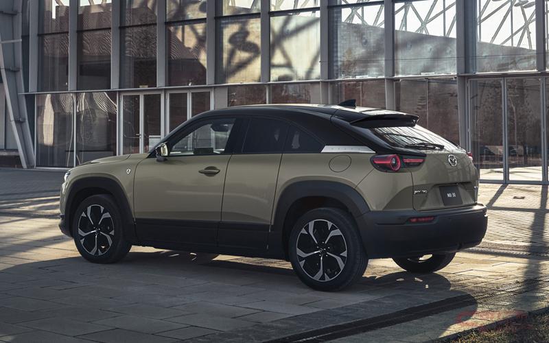 マツダ初の量産バッテリーEVとして2019年に世界初公開されたMX-30は、2020年にマイルドハイブリッドモデルを国内に導入。2021年にEVモデルが追加発売された。カーボンニュートラル実現に向けたマルチソリューション戦略を体現するモデルで、環境に配慮した素材を積極的に採用し、生産工程における環境負荷低減に等取り組んでいる。