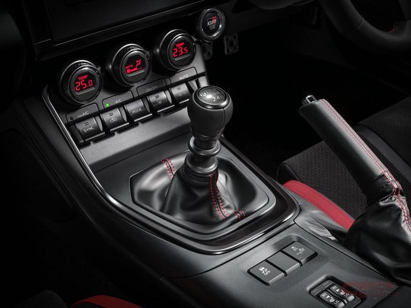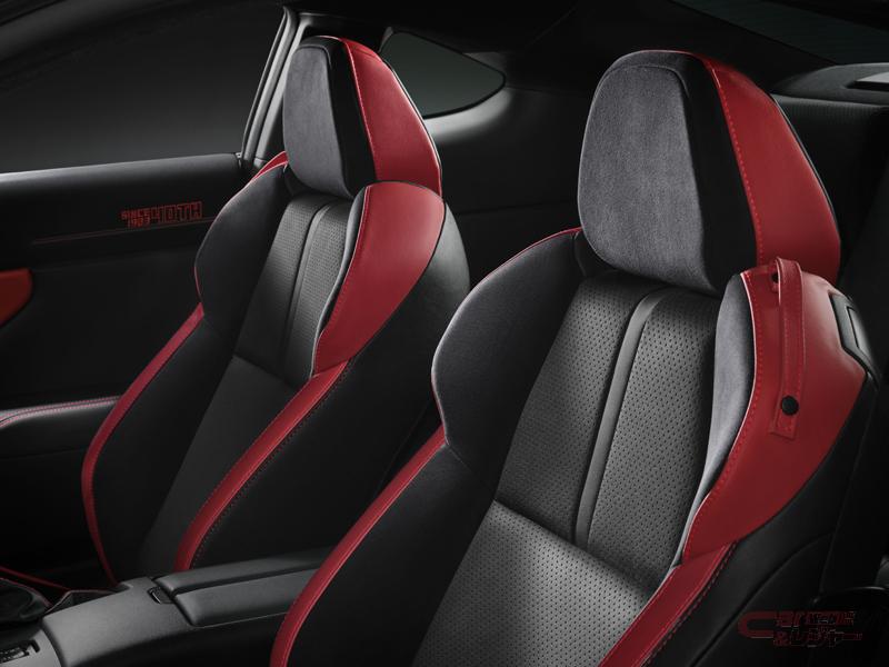 特別限定色ブラック×レッドを採用した内装では、40周年記念刺繍が施されたドアトリム(運転席・助手席ショルダーパッド部)、40周年記念GRフロアマット(販売店装着オプション)等、AE86のヒストリーを感じさせる専用ロゴ・加飾を多数採用している。さらに、今回の改良によりオプション設定されるbrembo製ベンチレーテッドディスクブレーキ、SACHS(ZF)アブソーバーも特別装備する。