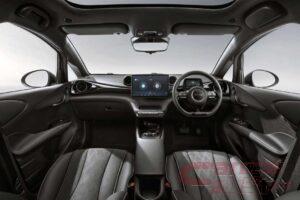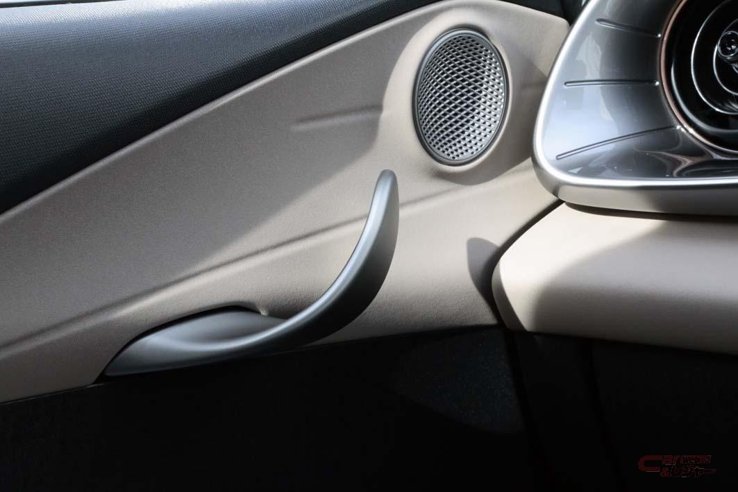 インテリアは、滑らかで広がりのある曲線でデザインされており、モダンでダイナミックな車内空間を演出しているほか、なだらかに起伏を繰り返す穏やかな波を連想させるダッシュボードや、イルカのフィンをモチーフにしたドアノブなど、遊び心が散りばめられている。