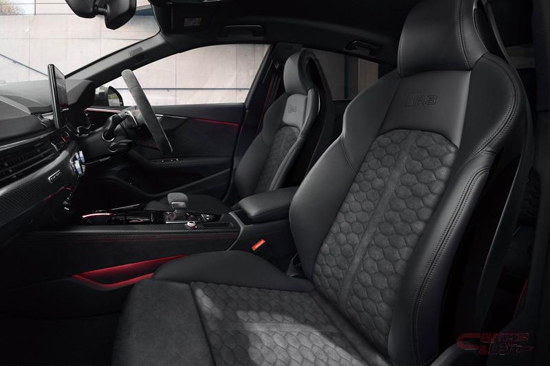 今回発表されたRSコンペティションは、両モデルをベースに、アウディスポーツが培ってきた技術とノウハウによる専用チューニングが施された限定モデルだ。足元には、ブラックメタリックの20インチAudi Sport製5Yスポークアルミホイールとハイパフォーマンスタイヤ“ピレリ P Zero Corsa”(275/30 ZR20)を特別装備。