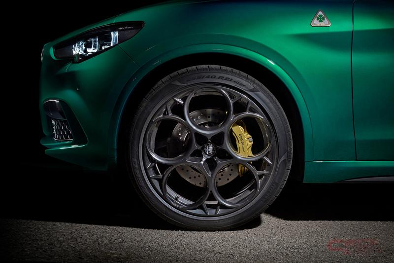 なお、ジュリアおよびステルヴィオのクアドリフォリオグレードは、来年上半期に刷新を予定しており、今回の限定車では、刷新したクアドリフォリオをベースに設定した、特別な限定モデルとなる。新しいクアドリフォリオでは、機械式のリミテッド・スリップ・ディファレンシャルを追加することで、アンダーステアを低減。トルク伝達の最適化や安定性およびコーナリングスピード向上が実現している。 最高出力510PS/最大トルク600Nmを発揮する総アルミニウム製V型6気筒2.9リッター ツインターボエンジンと、ZF社製8速オートマチックトランスミッションを搭載し、150msという素早いシフトチェンジも継承している