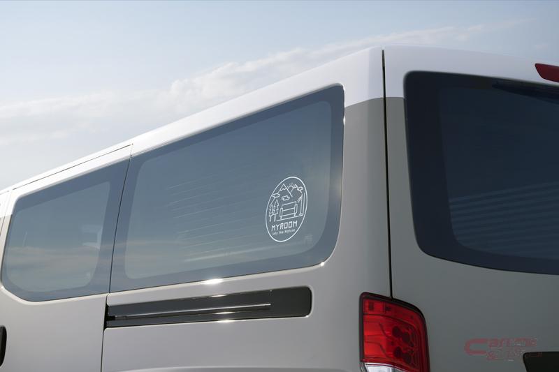 今回発表したキャラバンMYROOMは、キャラバンをベースに、日常生活に追われる中で非日常を感じ、自然に触れて安らげる空間がほしいカスタマーに向けて、自分のお気に入りの部屋ごと自然の中に持ち込んで、リラックス(憩うこと)ができるクルマとして開発されたモデル。