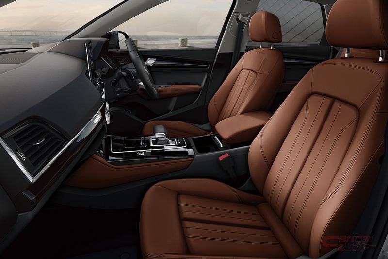 Q5 ハイスタイルでは、いずれも人気の高い“plus パッケージ”、“ラグジュアリーパッケージ”、“ブラックAudi rings & ブラックスタイリングパッケージ”のパッケージオプションを標準採用している他、20インチアルミホイール 5アームファルクスデザイン、カーボンミラーハウジング、マトリクスOLED リヤライト等を特別装備。ダークなプライバシーガラスの外装に、ピアノブラックデコラティブパネルとグラナイトグレーステッチ入りのオカピブラウンを基調とした内装を組み合わせ、上質でスポーティなイメージを演出している。