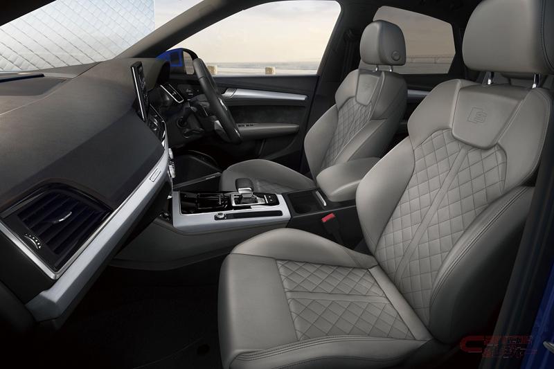 Q5 スポーツバック ハイスタイルでは、“Sライン プラス パッケージ”、ダークなプライバシーガラスを標準装備している他、レッドブレーキキャリパー、ダンピングコントロールサスペンション、視認性の高いマトリクスOLEDリヤライトを装備し、スポーティな走行性能を実現。足元にはAudi Sport製21インチアルミホイール5 Vスポーク オフセットデザイン アンスラサイト ブラックポリッシュトを装備した。また内装では、ローターグレーのダイヤモンドステッチパターンのファインナッパレザーを採用し、アグレッシブかつ高級感のある室内空間とした。