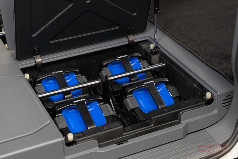 同実証に使用するホンダの「MEV-VAN Concept(エムイーブイバン コンセプト)」は、交換式バッテリーであるモバイルパワーパック8本を搭載した電動パワーユニットで走行する軽EVのコンセプトモデル。日中に太陽光で発電した再エネ電力を充電した交換式バッテリーを使用することで、充電による待機時間の削減や電力使用ピークの緩和など、より効率的なエネルギーマネジメントの実現に貢献する。