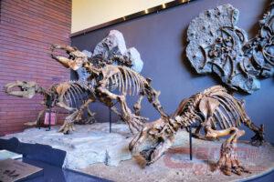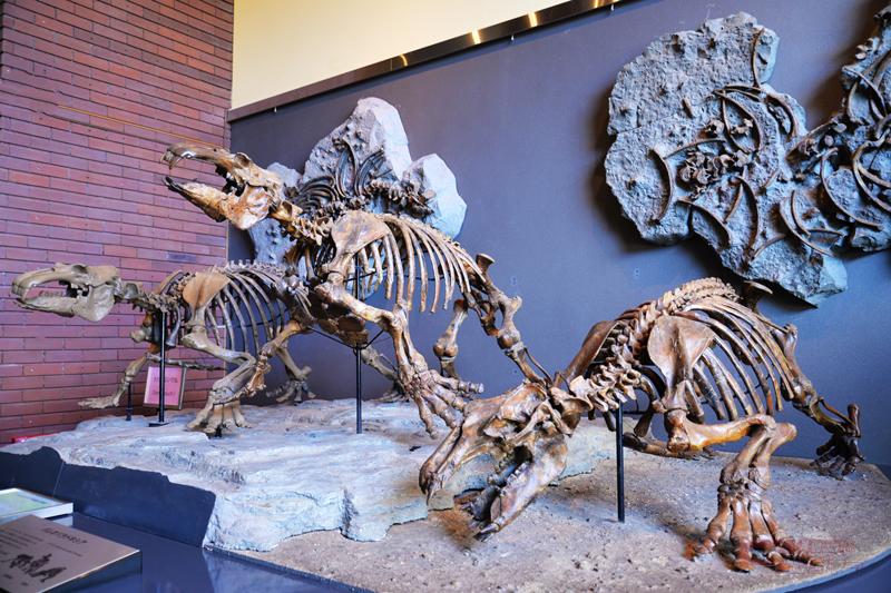 館内に入れば、巨大なサメの模型が目に入るだろう。これは秩父一帯が「古秩父湾」と呼ばれる海だった時代に生息していたカルカロドン・メガロドン。アゴの復元模型の前では記念撮影もできる。展示室へ進めば、国の天然記念物に指定されている絶滅種パレオパラドキシアの化石、金属鉱山として栄えた秩父鉱山産出のさまざまな鉱物標本など、貴重な収蔵品が豊富だ。