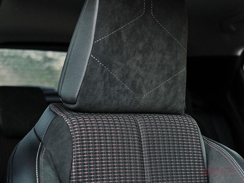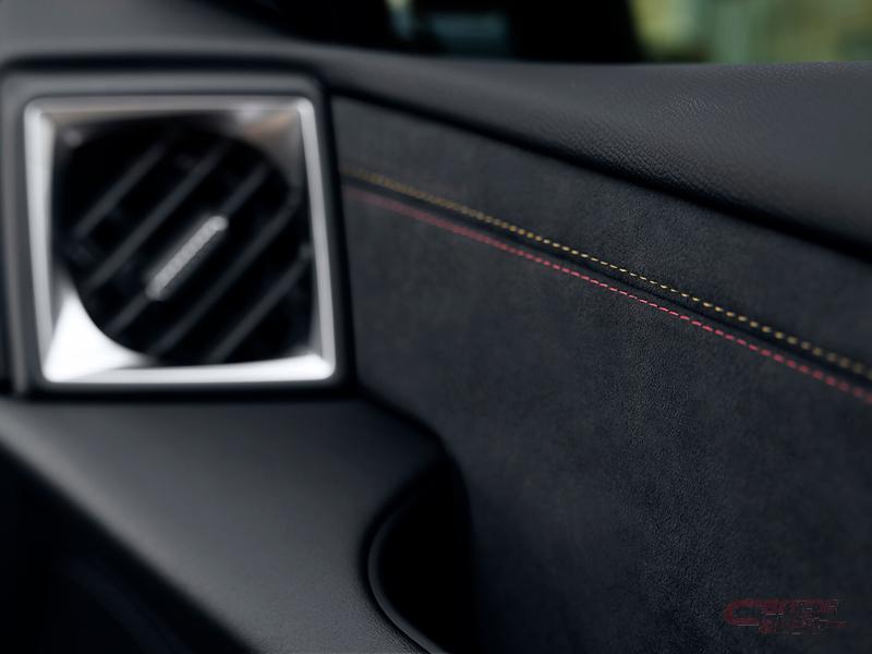 ブラックを基調とした内装では、パーフォレーテッド加工が施された革巻きステアリングホイールを装備し、ダッシュボードやドアトリム等、随所にアルカンターラを採用することで上質でシックな室内空間とした他、全シートにおいてテップレザーと、アルカンターラおよびファブリックを組み合わせた特別仕様車専用の設定を採用。また、随所に施されたカルマン(紅色)&ゴールドの専用ステッチが特別感を主張している。