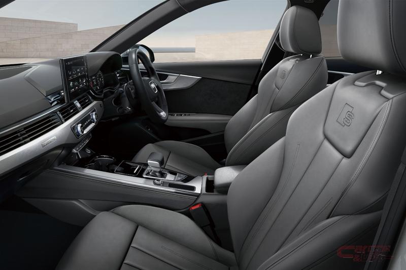 モデル別では、A4/A4 アバントには、運転席メモリー機能、フロント4ウェイランバーサポート等を含む“S line plusパッケージ”、ブリリアントブラックにペイントされたルーフ(セダンのみ)とブラックのサイドスカート、遮音性を向上するアコースティックガラス、リヤシートヒーターを採用。また、“コンフォートパッケージ”にはマトリクスLEDライト(フロントダイナミックターンインディケーター)とヘッドライトウォッシャーが含まれている。 A5 スポーツバックには、マトリクスLEDヘッドライト/アウディレーザーハイビーム等を含む“Audiレーザーライトパッケージ”を装備した。