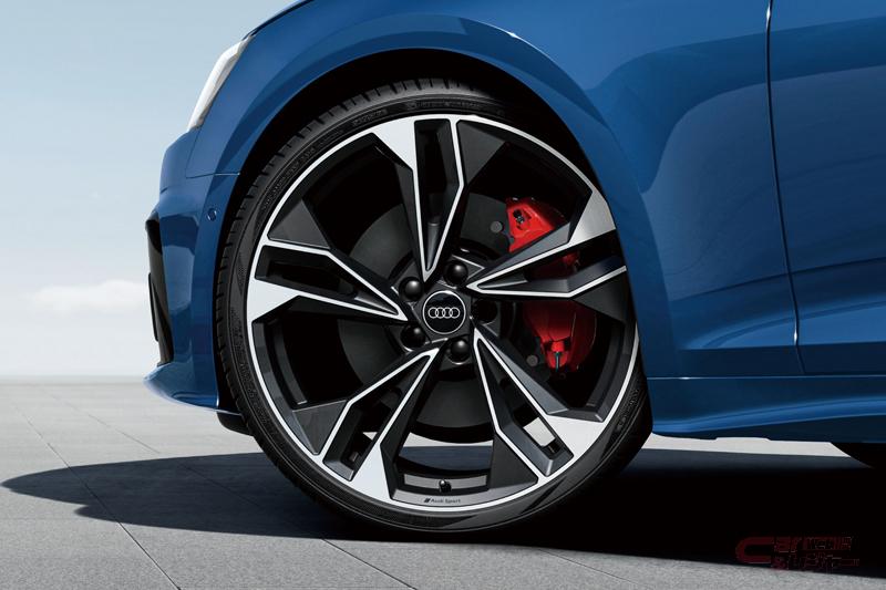 さらに特別装備として、A4/A4 アバントには、ブラックメタリックの19インチAudi Sport製5アームフラッグデザイングロスアンスラサイトブラックポリッシュトアルミホイールを、A5 スポーツバックには、20インチAudi Sport製5ツインスポークポリゴンデザインアンスラサイトブラックポリッシュトアルミホイールを装着し、レッドペイントのブレーキキャリパーを採用することで引き締まった足元を演出。