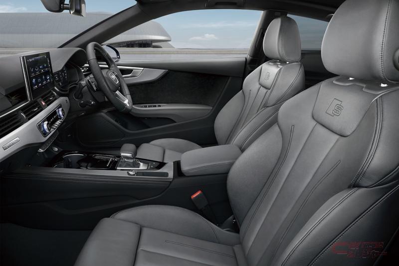 外装では、ブラックに塗られたリアスポイラー(アバントを除く)とテールパイプトリム、さらにRSモデルと同じくインナーパネルの一部がダークカラーになるRSスタイルのヘッドライトが精悍さを強調。左右リヤドア下部にAudi Ringsデカールを、ドアを開けた時にS lineの証として「S」ロゴを地面に投影するドアエントリーライトを装備している。