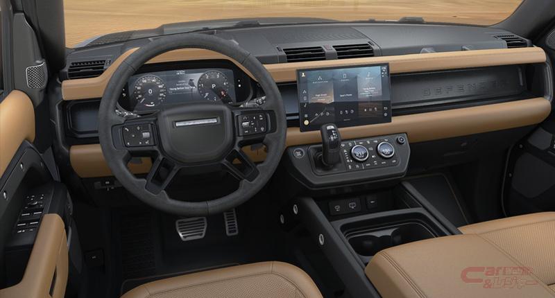 ディフェンダー 110 カルパチアンエディション キュレイテッド for ジャパンは、2024年モデルで日本に初導入した「カルパチアンエディション」をベースとしており、パワートレーンは最高出力525PS/最大トルク625Nmを発揮する5.0リッターV型8気筒スーパーチャージドエンジンを搭載。グロスブラックフィニッシュの22インチ“スタイル5098”アロイホイール、オールシーズンタイヤ、22インチフルサイズスペアホイール、ボディ同色のスペアホイールカバー(ボディ同色)、フライトメタルペダル、ドライブレコーダー、Wi-Fi接続(データプラン付)、コラプシブル ラゲッジオーガナイザー、プレミアムシートバックストウェージ等のオプションやアクセサリーを標準装備した特別仕様車だ。