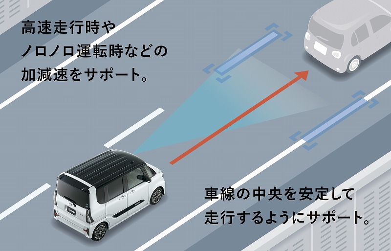 先進安全装備は、ステレオカメラの特性を余すことなく使い切る独自の制御ロジックを構築し、スマートアシストⅢをベースに全車速追従機能付きACC、ステアリング操作をアシストする駐車支援機能などを新たに実装した。