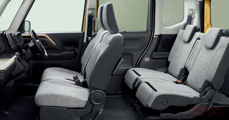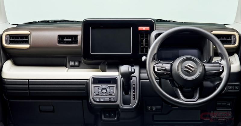 インパネ周りは、運転席や助手席からの動線や使いやすさを考慮したレイアウトを採用している他、助手席前のビッグオープントレー等の多彩な収納スペースを設置。さらに、スズキの軽自動車初となる電動パーキングブレーキやステアリングヒーター、後部座席にはオットマン機能付のマルチユースフラップ等の新機能も採用している。