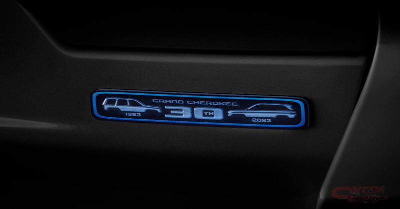 さらに、1993年に誕生した当時のグランドチェロキーと現行モデルのシルエットが向かい合わせになったデザインの専用バッジをリアゲートに採用した。