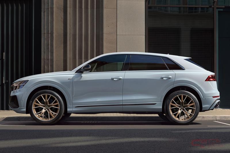 外装では、Q8 50 TDI クワトロ S lineをベースに、車体色にはスズカグレーメタリックを採用し、上質なマットブロンズポリッシュトの22インチ 5VスポークスタースタイルAudi Sport 製アルミホイールを装着。また、バルコナレザーによるSロゴ入りのスポーツシート、オークグレーのデコラティブパネルを採用しタ上質感のある内装デザインを組み合わせることで、洗練された新たなラグジュリースポーツの世界を提案している。