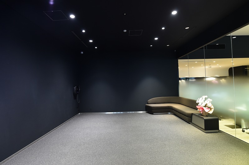 黒基調の店内は落ち着いた雰囲気で、天井までが高く開放感にあふれ、フロアの色はツートーンで来店客の導線(木目)と展示スペース(サーキットの路面のような黒)が明確に分かれている。さらに、歩道沿いに広がる車両展示スペースは8台(従来4台)に拡大され、より多くのモデルに触れることができる。