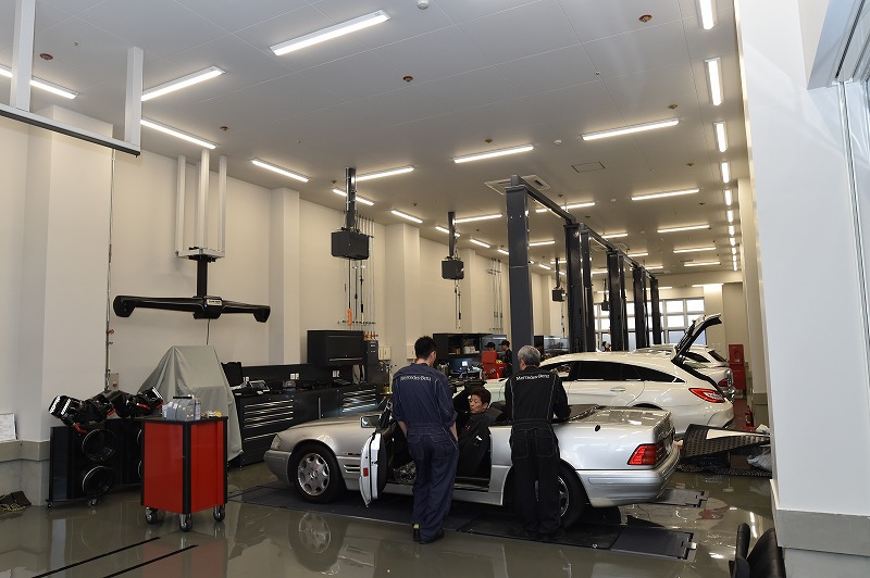 また、2階にある冷暖房完備の整備工場は7ベイを擁し、クルマの滞留時間も減少し「仕事がしやすくなったことで、お客様に質の高いサービスを提供できる環境が整えられた」と、顧客だけでなく従業員にも〝新店舗効果〟が大きいと語った。
