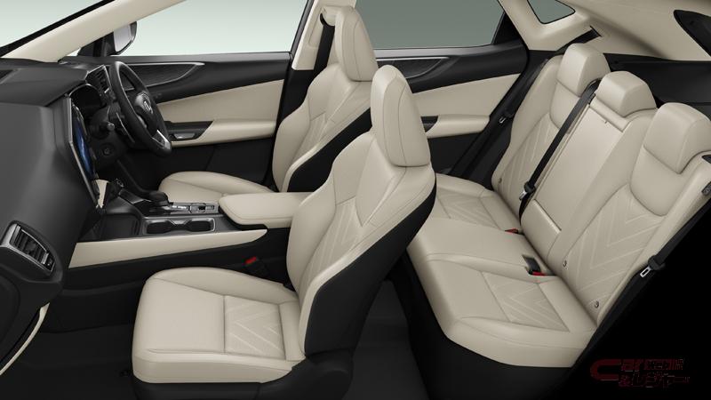 また、走行制御の改良(NX450h+、NX350h、NX350)や、走り始めの前後トルク配分の見直し(NX350)を行うことで、スムースな発進やアクセル操作に対するリニアな車速コントロールを実現。さらに、ボディ系・エンジン懸架系のNV諸元の見直しを図り、室内の静粛性を向上した。