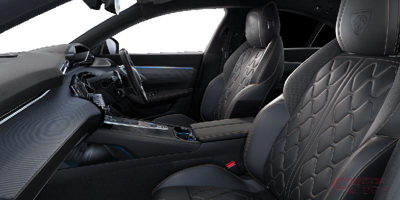 外装では、フロント両サイドにプジョーのアイデンティティでもあるライオンのかぎ爪を模した3本のライトを装備している他、バンパーに溶け込んでいくフロントグリル、グリルに向かい消えていく極薄型LEDマトリクスヘッドライト等が、フロントの表情に一体感をもたらし、大胆で革新的なデザインを実現。