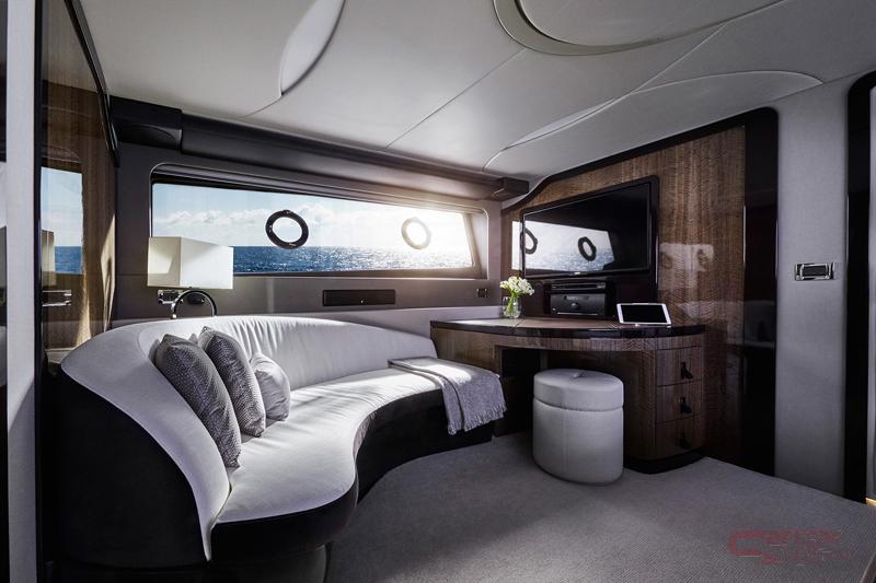 ユーザーからの要望に応え、フライブリッジを1,400mmを拡充し、ゆったりと寛げる広いラウンジソファと機能性豊かなwet barを採用。また、オフショアでの楽しみ方が広がるよう、スイミングプラットフォームを700mm延長した。