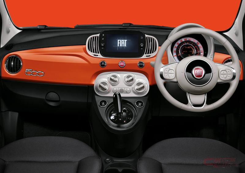 今回の仕様変更では、14インチスチールホイールから15インチアルミホイールに変更した他、ミラーキャップのカラーをボディ同色からブラックに変更。さらに、フィアットロゴがエンボス加工されたブラックのファブリックシートを標準装備した。車体色は、ボサノバ ホワイト、パソドブレ レッド、シチリア オレンジの3色を設定。