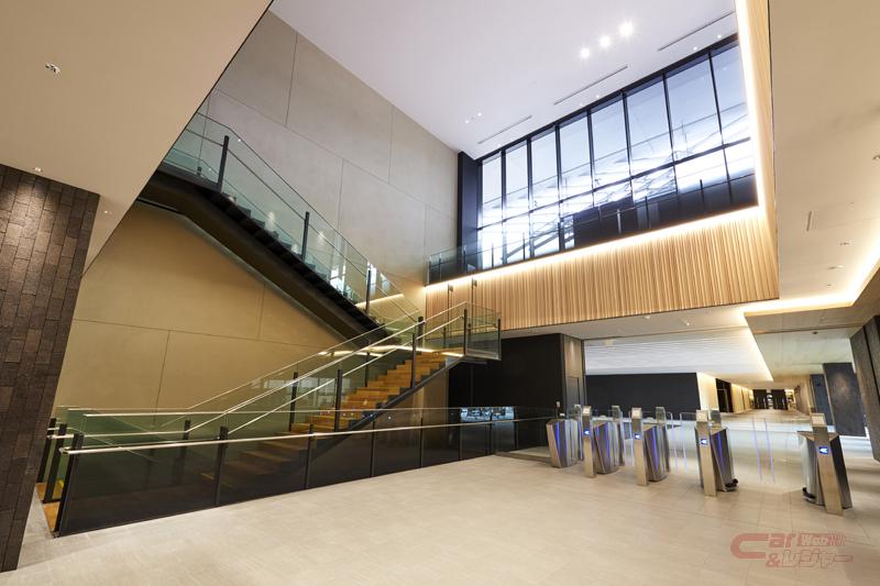 今回、新たに車両開発棟や来客棟を備えた西エリアが完成し、全面運用を開始。車両開発棟は、レクサスカンパニー、GRカンパニーの事業・開発拠点となり、企画・デザイン、開発・設計、試作・評価などあらゆる機能のメンバーが、ニュルブルクリンクのピットのようにクルマを中心に集結し、テストコースを走らせることでクルマの課題を見つけ、改良を繰り返しながら、車両の開発を実施する他、最先端のデジタル機器を活用し、リアルなクルマづくりとデジタルとを融合させた開発を推進。