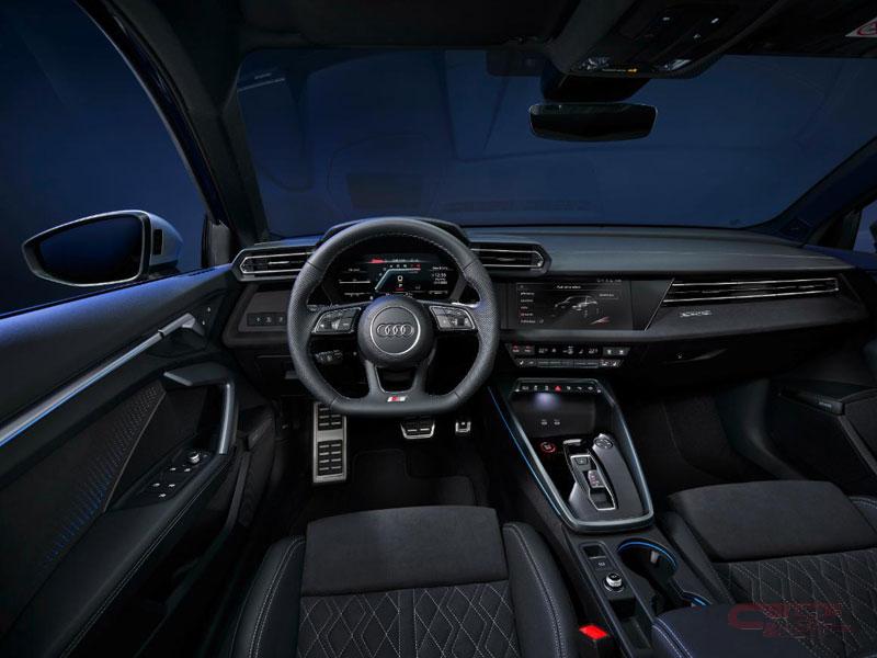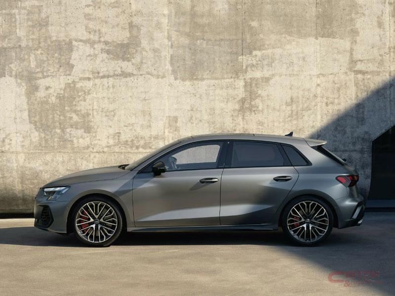 新型S3では、最高出力333PS(全モデル比で23PS向上)/最大トルク420Nm(全モデル比で20Nm向上)を発揮する2.0リッター直列4気筒ガソリンターボエンジン「2.0 TFSI」を搭載。0~100km/h加速は4.7秒を達成し、最高速度では電子リミッターにより250km/hに制限されている。