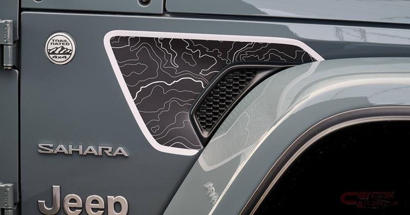 新しいブラックテクスチャーの7スロットグリルをベースに、「Unlimited Sport」および「Unlimited Rubicon」グレードにはニュートラルグレーメタリック、「Unlimited Sahara」グレードにはプラチナシルバーのグリルサラウンドを採用。