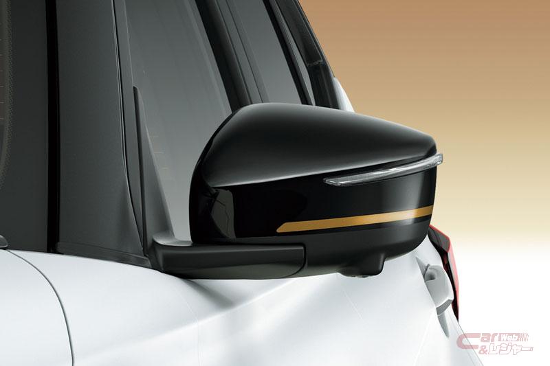 今回設定した90周年記念車は、電動車を象徴するカッパー色をアクセントカラーとして外装の各所に採用し、ブラックカラーにカッパーストライプがデザインされたドアミラー、ガンメタリック化した17インチアルミホイールを標準装備。シート地にはブラックの合皮と織物のコンビシート、90th Anniversaryタグを採用し、特別感を演出した他、「インテリジェント ルームミラー」、前席ヒーター付シート、ステアリングヒーター、寒冷地仕様が標準装備となった。